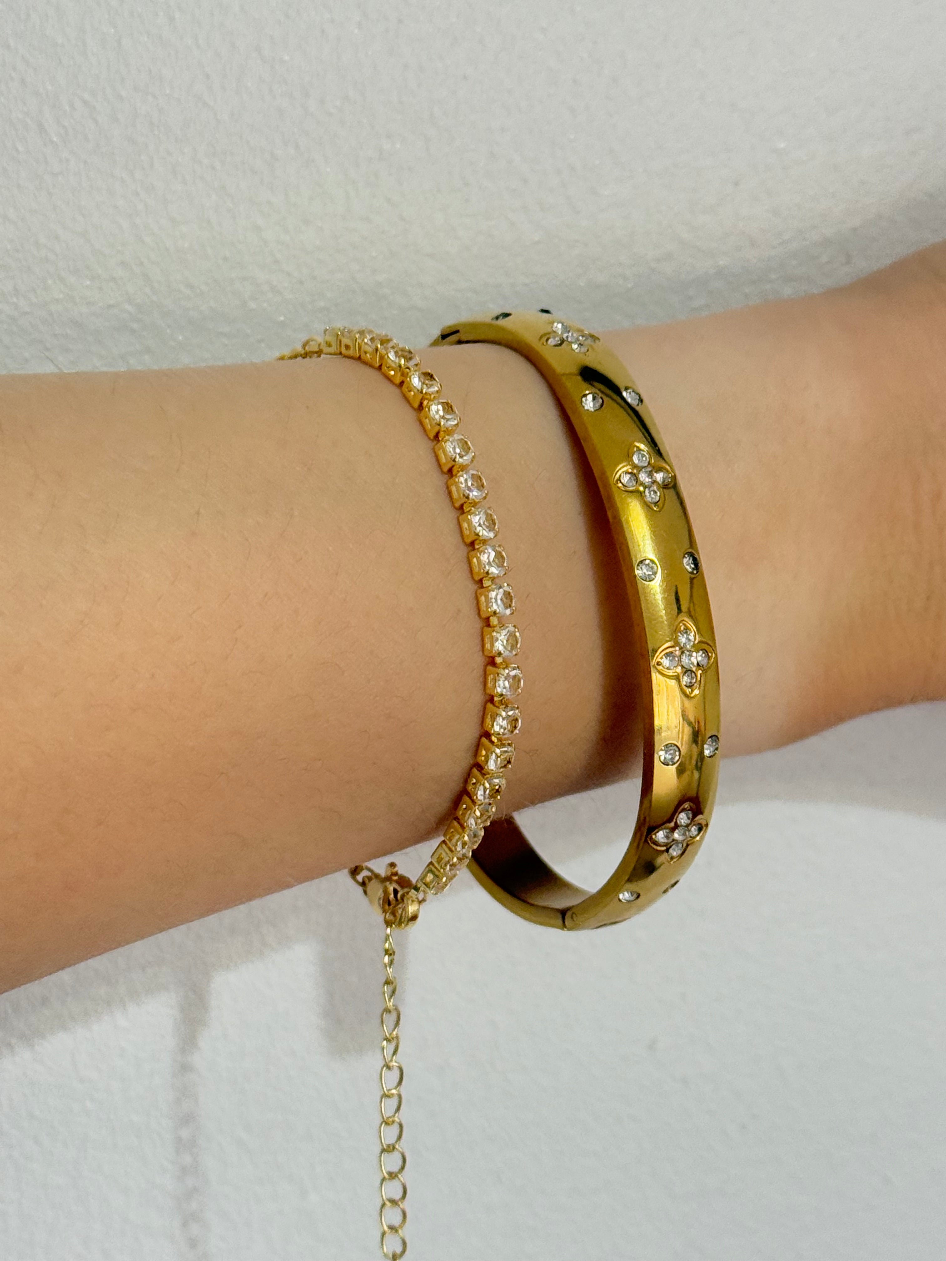 2 18k gold plated stainless steel bracelets bundle with zircons rhinestones