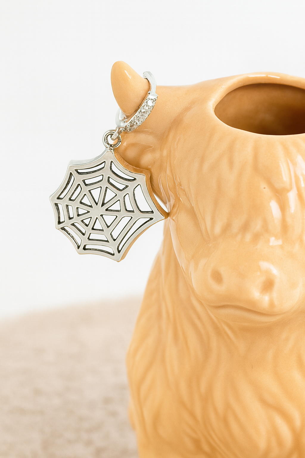 Silver Spider web Hoop Earrings - Halloween Charm Earrings | SMGemz